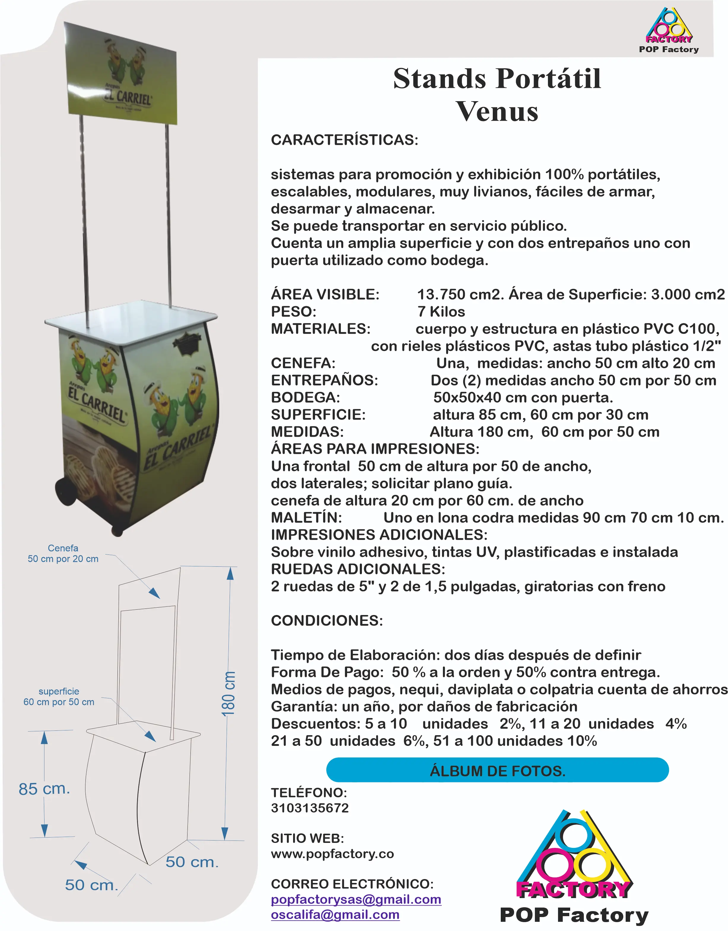 Nuestros modelos incluyen bodega interna, superficie higiénica de fácil limpieza, armado y desarmado rápido y sencillo, estructura liviana y resistente y personalización completa con branding corporativo.